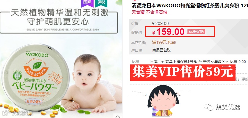 【年中大促】日本Wakodo和光堂红茶爽身粉男女婴儿童宝宝玉米痱子粉不含滑石粉 原价:99元 VIP /黑卡M1会员 福利补贴价:59元(新疆西藏+10元运费)