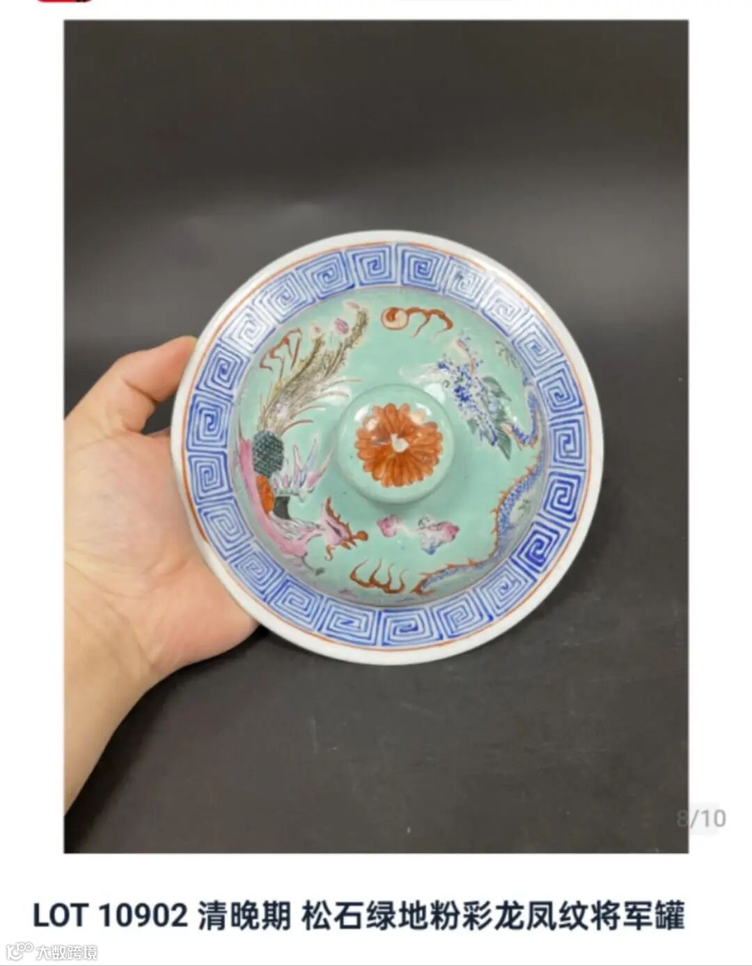清晚期 松石绿地粉彩龙凤纹将军罐 [1个]