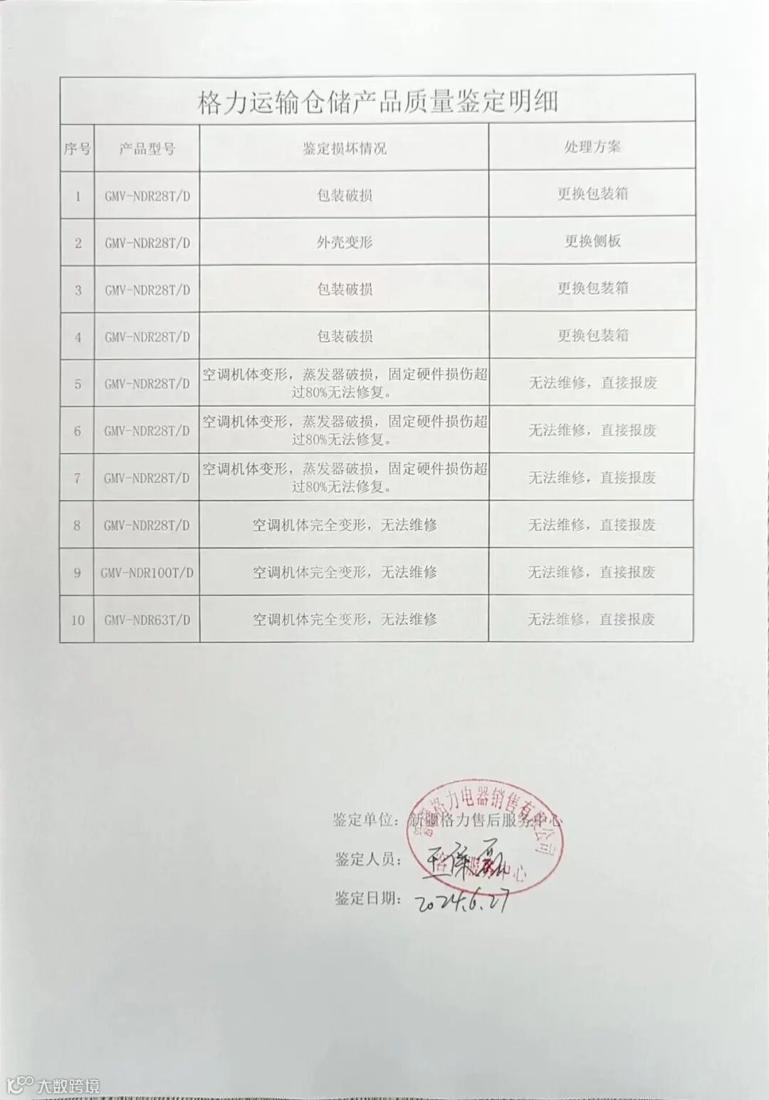 标的规格: 格力GMV-NDR28T/D,4台;GMV-NDR100T/D,1台;GMV-NDR63T/D,1台