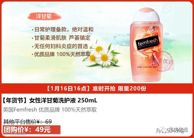 Femfresh女性私处洗护液是全球第一明星产品,英国戴安娜王妃的御用品牌,受到许多明星的喜爱。正常健康的女性首选这款护理,富含甘菊、芦荟以及叶鞘植物中的天然乳酸成分,温和配方为女性设计,保持自然酸醎平衡清洁私密处,防止私密处炎症、感染和妇科病的发生,止痒、抑菌,呵护女性私处健康~