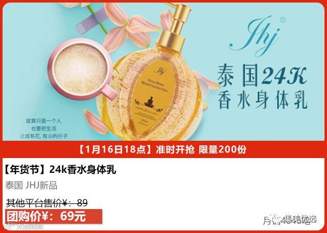 泰国新品JHJ24K香水身体乳蕴含天然提取物和金箔活性物,浪漫香氛,持久留香。深度滋养肌肤,不油腻易吸收,锁水保湿,给你丝绸般柔润肌肤~