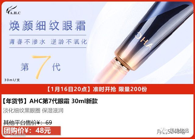第七代AHC眼霜添加了18种玻尿酸,成分也比前几代更完善。具有焕白的功效,在去除眼周问题同时,能让皮肤更加白皙有光泽,升级后不仅限于眼部、还可以用在法令纹,颈纹和全脸,在功效上飞跃的升级!