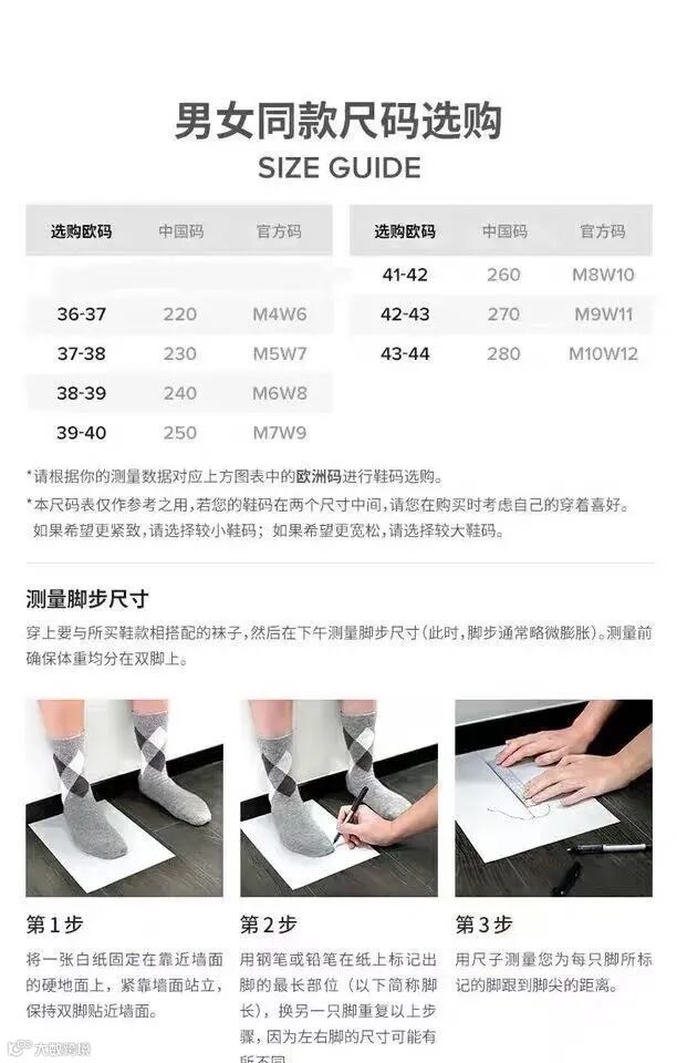 (例如37码数,脚背高脚宽肥选择M5码数,脚背低脚瘦选择M4码数)