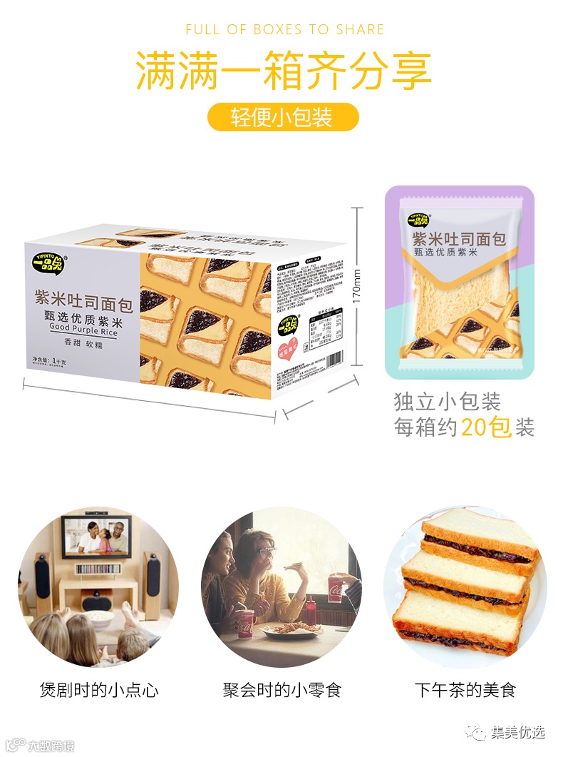 一品兔紫米吐司面包整箱1kg