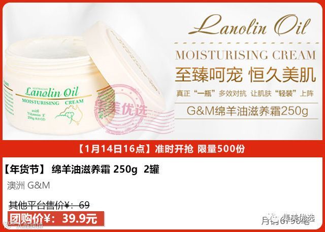 年前最后一波,澳洲“国宝级护肤品”绵羊油,绵羊油“滋润但绝不油腻,吸收好,软滑细腻”,富含维他命E,甘油,能天然保湿,维持皮肤光滑度,美容养颜,非常适合秋冬季节使用,涂抹在脸部和全身,防止干燥和蜕皮,全身肌肤润滑细嫩。可用于滋养粗糙、干裂的手或脚后跟,还能保持其天然水分~