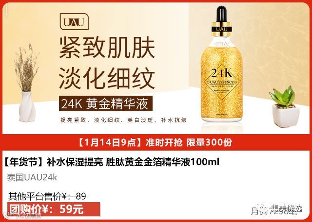 泰国UAU24K黄金精华液让你感受黄金般的奢华体验!护肤藏龄的秘密不只虚有其表,除了blingbling的金箔还蕴含了多种天然植物精华!补水保湿、预防肌肤早衰、匀净肤色,无惧岁月痕迹、尽享奢华美肌,给肌肤一次“焕活”的机会!!