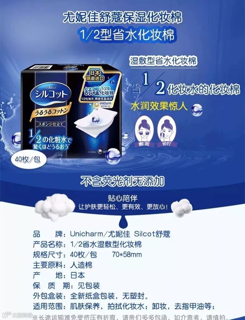 日本尤佳妮unicharm省水化妆棉,