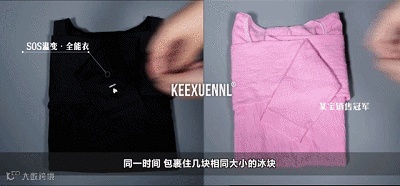 20分钟后,普通内衣冰块融化过半,全能衣内的冰块几乎未融化,隔绝温度效果更好,才能保持身体的恒温。