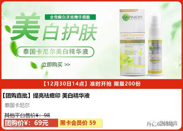 泰国🇹🇭卡尼尔 全效美白精华据称美白淡斑去痘印届的黑马 主打成份为烟酰胺+VC衍生物,有美白,淡斑,去痘印的同时 对角质有一定的调理作用,使用感上清爽好吸收。