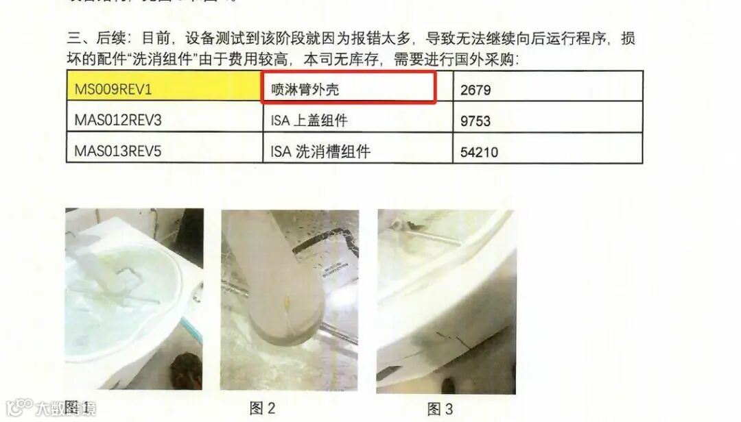 受损原因: 喷淋头水湿