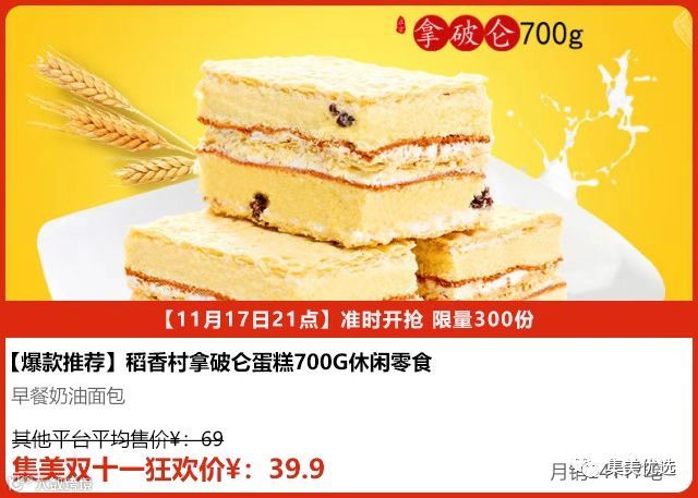 “拿破仑蛋糕”法文名为Mille-feuille一千层酥皮的意思,又被称为千层酥!是法国经典甜品。使用繁杂的起酥工艺,酥皮之间的夹层丰富,不仅有鲜奶油,还有吉士酱。稻香村拿破仑是视觉味觉的融合,优质面粉、新鲜鸡蛋和香甜奶油打造精致甜品,给你甜蜜的享受。原味、玫瑰味和蓝莓味带给你不一样的惊喜,独立小袋包装,用心锁住每一口新鲜~