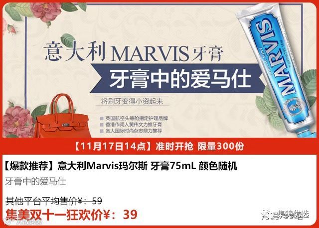 Marvis牙膏是专供大英航空头等舱客人专用的护理产品。采用经典传统做法,工序复杂,一丝不苟,质感粘稠浓密,味道格外强烈,不只感觉舒爽,更具有保湿及美白功效。Marvis成功把牙膏概念重新演绎,使简单的护齿变成生活享受,让你天天享有新奇美味体验!