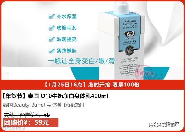蕴含丰富的牛奶蛋白,丰富维他命A和E及Q10营养成分,美白润肤同时补充肌肤所需水分,保持肌肤动态水平衡,使肌肤恢复如丝般的柔嫩润滑,持续使用更令肌肤白皙细嫩、柔滑亮丽!防止皮肤老化,保持年轻,吸收率达到80%,生化辅酶Q10紧致皮肤,稳定其良好状态,适合干燥皮肤使用~