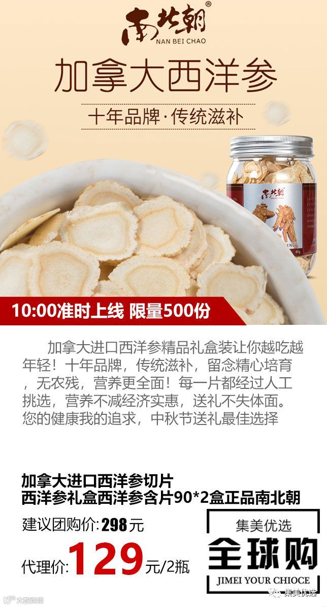 加拿大进口西洋参精品礼盒装让你越吃越年轻!十年品牌,传统滋补,留念精心培育,无农残,营养更全面!每一片都经过人工挑选,营养不减经济实惠,送礼不失体面。您的健康我的追求,中秋节送礼最佳选择
