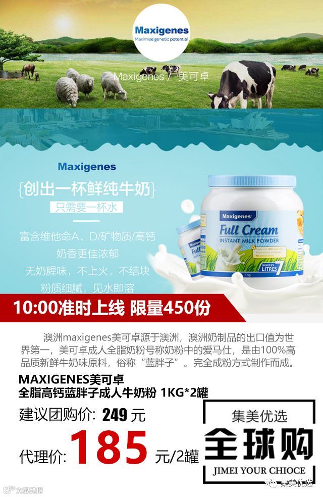 高端大气上档次!澳洲人气最好的奶粉!开盖子就闻到一股很浓的奶香味!适合三岁以上儿童,成人,孕妇,老年人,因为长得矮矮胖胖,所以大伙也称它为蓝胖子奶粉。️喝过的都说好,回购率100%