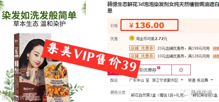 【大牌团购】生态鲜花3D泡泡染发剂染发膏 自然黑/栗棕色 两色可选 原价:68元 VIP /黑卡M1会员 福利补贴价:39元