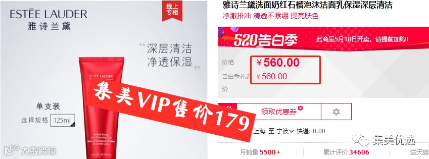 【大牌团购】法国 ESTEE LAUDER 雅诗兰黛红石榴洁面洗面奶鲜亮焕采泡沫洁面乳125ML深层清洁控油 原价:280元 VIP /黑卡M1会员 福利补贴价:179元