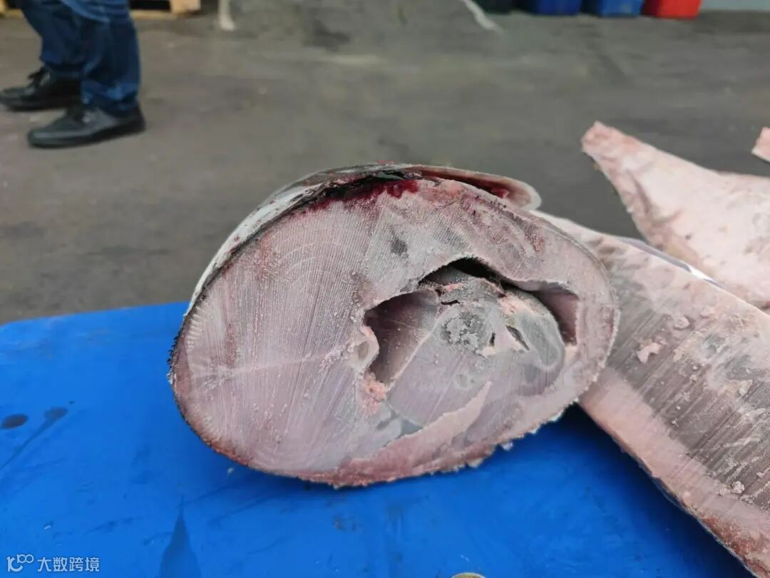 受损程度: 整箱货物卸货时表面无白霜,抽取货物切开后发现货物肉质颜色变白,解冻后肉质松散