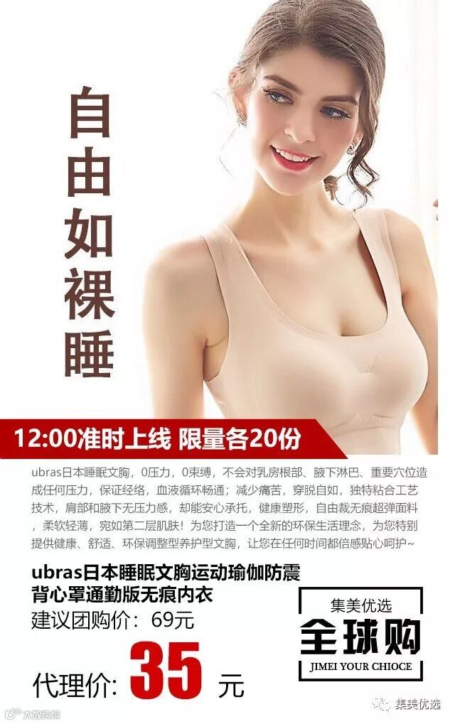 ubras日本睡眠文胸,0压力,0束缚,不会对乳房根部、腋下淋巴、重要穴位造成任何压力,保证经络,血液循环畅通;减少痛苦,穿脱自如,独特粘合工艺技术,肩部和腋下无压力感,却能安心承托,健康塑形,自由裁无痕超弹面料,柔软轻薄,宛如第二层肌肤!为您打造一个全新的环保生活理念,为您特别提供健康、舒适、环保调整型养护型文胸,让您在任何时间都倍感贴心呵护~