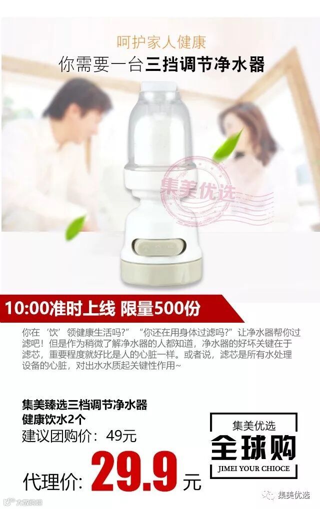 集美臻选三档调节净水器 健康饮水2个