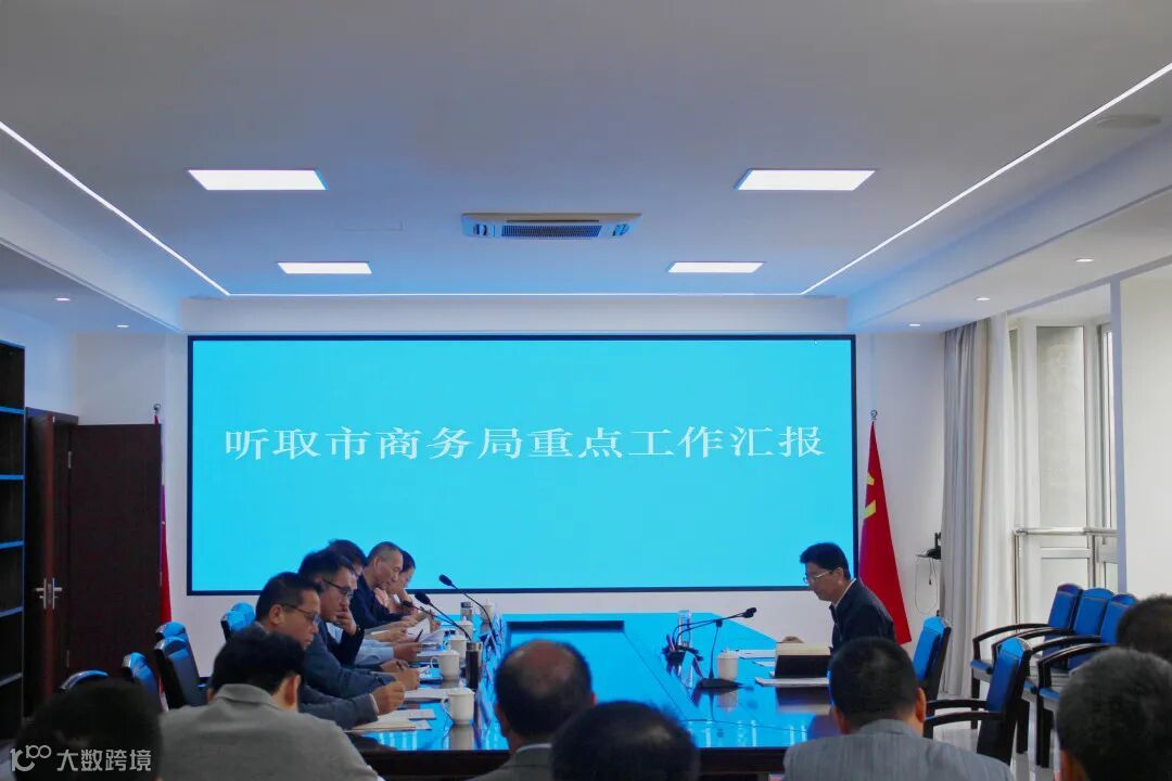 市政府秘书长陈俊陪同调研。市商务局班子成员及重点处室主要负责人参加会议。