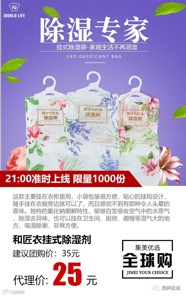 这款主要挂在衣柜里用,小袋包装很方便,贴心的挂钩设计,随手挂在衣服旁边就可以了,而且感觉不到有那种令人头晕的香味。独特的氯化钠潮解特性,能够自发吸收空气中的水蒸气,除湿去异味,也可以挂在卫生间、厨房、阁楼等湿气大的地方,吸湿除潮,非常方便。