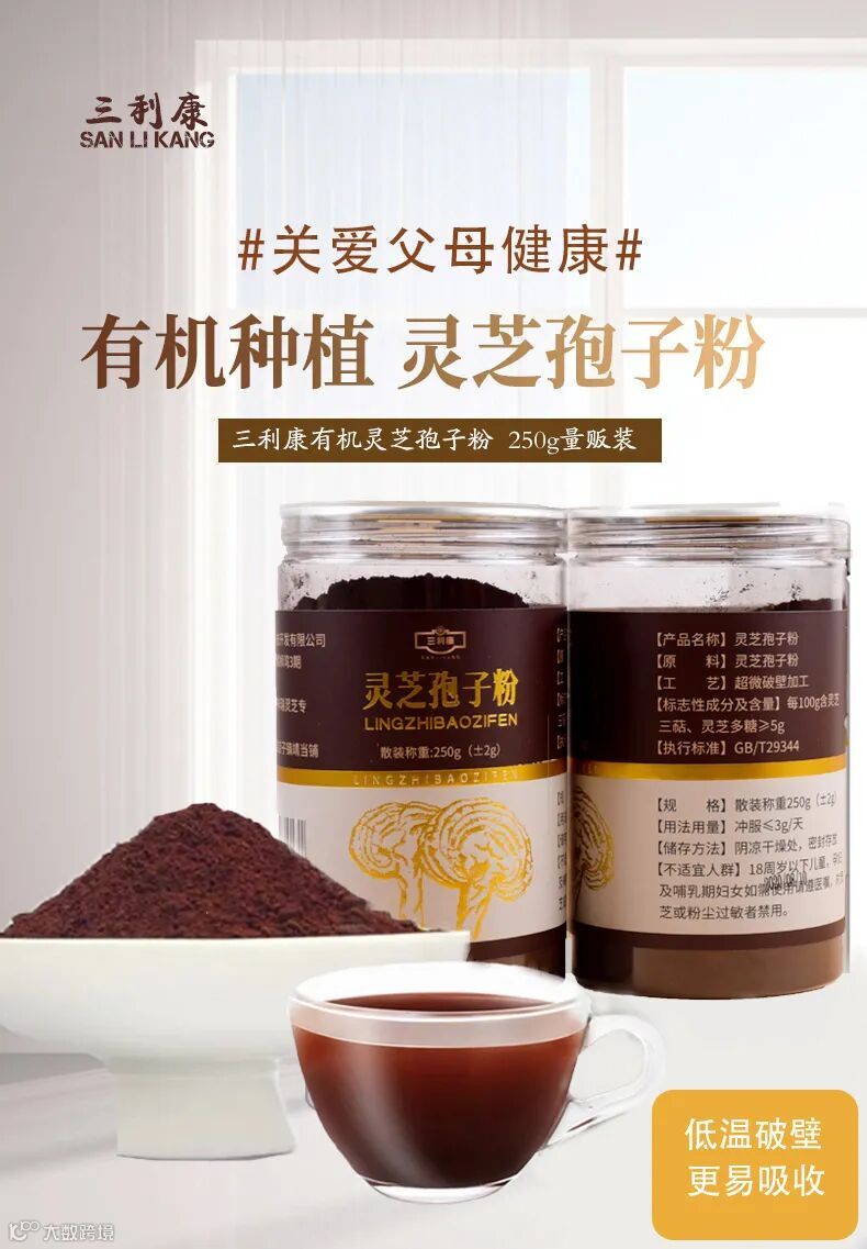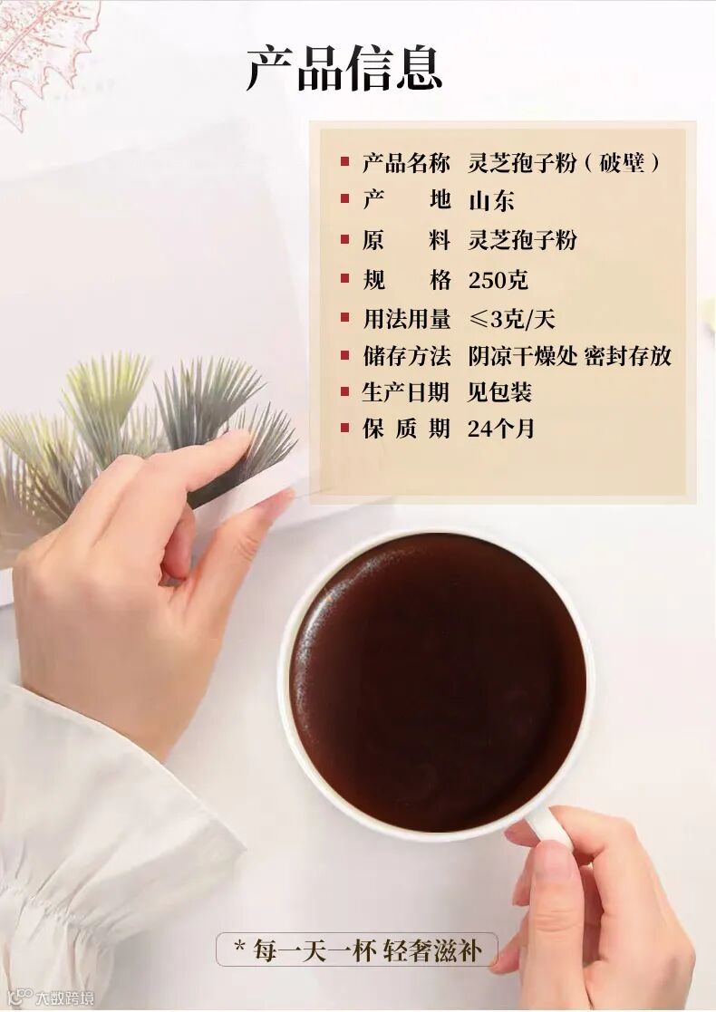 灵芝孢子粉,是灵芝成熟后喷射出来的类似于植物的“种子”菌类子实体,本身的颜色为棕褐色粉状物,外观极其细腻,无太明显的特殊气味。但是经过破壁后的颜色呈棕色,破壁后会有孢子油渗出,所以闻起来有一股菌香味和油香味;吃起来也是淡淡蚝的香味,略微带苦,冲水后苦味可以忽略。用母指和食指轻轻搓摸,有光滑细腻感,无粘连(破壁后的孢子粉会带油性,所以会造成陀结块情况,但是能搓开,并不是粘黏,属于正常状态)、无沙砾等异物的感觉,即为纯正孢子粉。