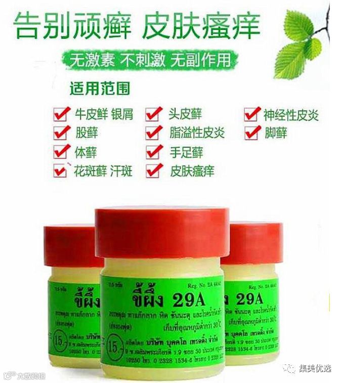 体痒难耐,彻夜难眠😂告别顽癣,泰国癣药膏,无激素,无刺激,无副作用,对皮肤病很有疗效,是居家必备良药。主要成分:水杨酸,苯甲酸,沉淀硫磺,樟脑和凡士林。规格:7.5g/瓶。功能主治:缓解皮肤癣,疥疮,黄癣和香港脚。纯草药提炼,药性温和,泰国居家常备药,给你多一份体贴[拥抱]。