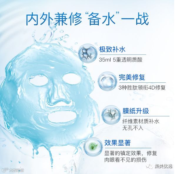 这款面膜添加五种透明质酸使肌肤从内到外得到彻底的保湿护理 超服帖 ✔️可给肌肤带来如注射水光针剂般的效果!适合所有肤质,尤其是大干干干皮👍🏼推荐理由是不是可以脑洞一部电影了!!面膜跟我们平时用的面膜不一样的,而且这一整盒里面就整整有35毫升的玻尿酸!孕妇以及哺乳期都可以使用!补水效果杠杠的,没有刺痛感,敷几次就明显感觉到肌肤水润水润的。