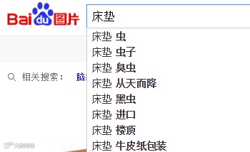 你看,这得多少人、搜了多少遍「床垫」和「虫子」,大数据才会这么聪明地帮我关联显示。(不过我还真顺着这些词继续搜了图,但实在放不来,请大家自行脑补…)