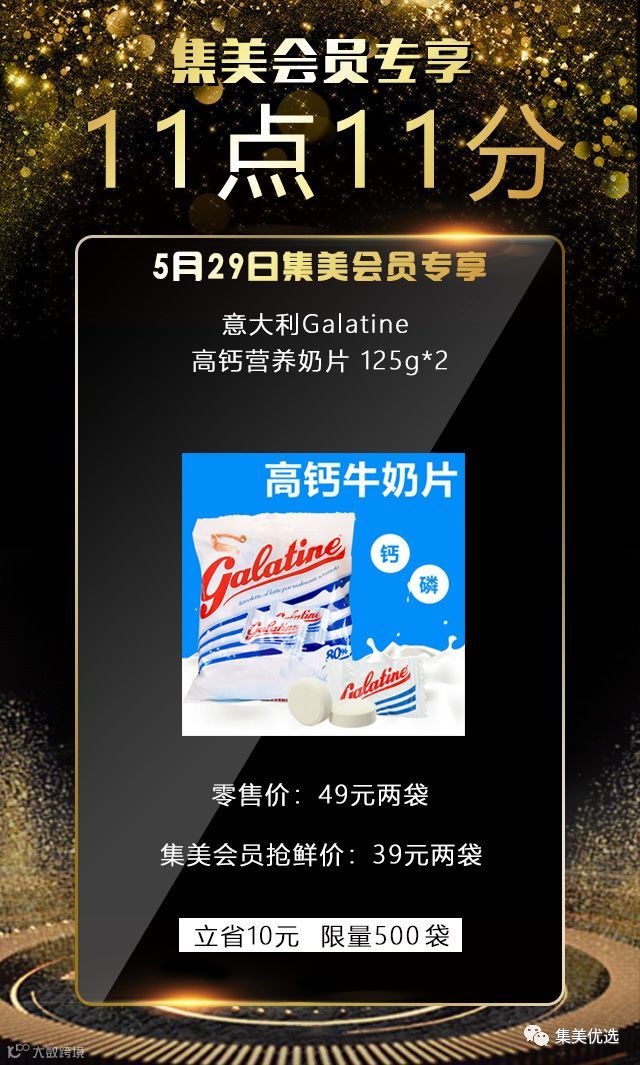5月29日,11:11,意大利Galatine 高钙营养奶片 125g*2,原价49元,建议零售价39元,限量500份手慢无!!!