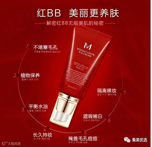 【谜尚大红BB】经典,性价比高的一款。无论哪个季节,无论种肤质,你都不应该错过这款传奇的红BB!关键价格非常的亲民,中国专柜要卖150+呢!具有很强的遮瑕力,可有效遮盖皮肤的缺陷,让皮肤明亮、自然,透出光芒的肌肤才是最美的肌肤,同时拥有SPF42 PA+++高防晒指数,给肌肤更高的防晒防紫外线功效。含透明质酸成分,维持肌肤舒适水润,帮助肌肤锁住水分。防晒、遮瑕、美白、改善皱纹。