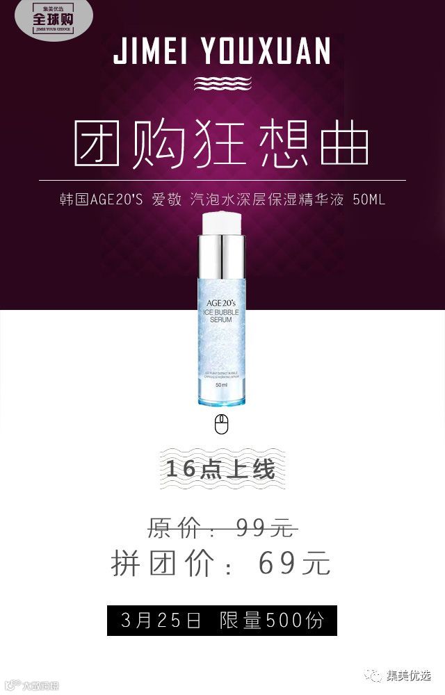 3月25日,16:00准时上线,原价99元,团购价69元,立省30元,限量500份。