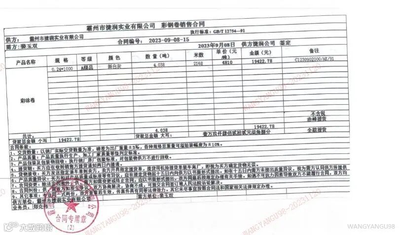 标的规格:钢卷