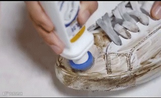 只要这样抹一抹,擦一擦,脏脏的小白鞋就马上变干净了!