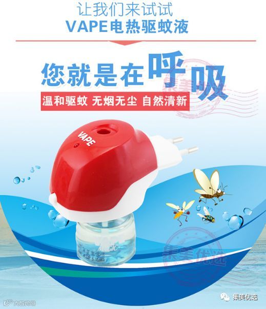 PRESIDIO MEDICO CHiRURGICO医生认证,VAPE的驱蚊水是经过医生认定过的,无毒,针对普通蚊子跟虎蚊,原理也很简单,就是通过风扇将药片的驱蚊成分吹出,达到驱赶蚊虫的目的。完全无味,孕妇和婴儿都可以使用,驱蚊器上有开关器、更方便使用!