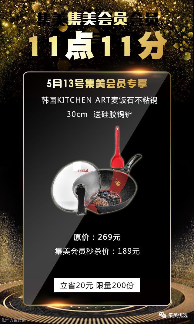 5月14日,11:11,韩国KITCHEN ART 麦饭石不粘锅 30cm 带锅盖 送 全硅胶锅铲,原价269元,建议零售价189元,限量200份,手慢无!!!