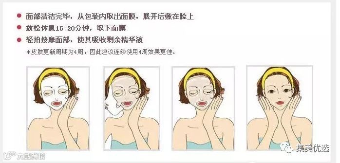 3.可在沐浴后使用,或用热毛巾敷面10分钟后使用,面部毛孔充分扩张,更利于肌肤吸收面膜中的营养
