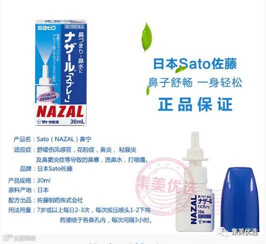 一入“鼻炎”深似海,从此健康是路人。真心给大家推荐这款,超级管用!sato佐藤制药,nazal鼻炎喷雾,适用于任何性质的鼻炎,专治鼻塞 鼻水,喷后效果立现!冬天鼻炎患者福音喔,让你呼吸新鲜空气,7岁以上适用,用法一次2-4次,一日不超过6回。