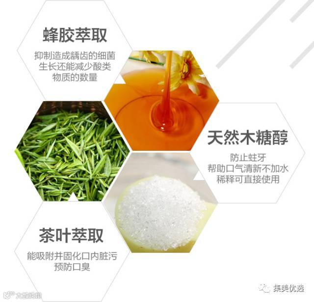 主要成分:蜂胶萃取物、茶叶萃取、天然木糖醇