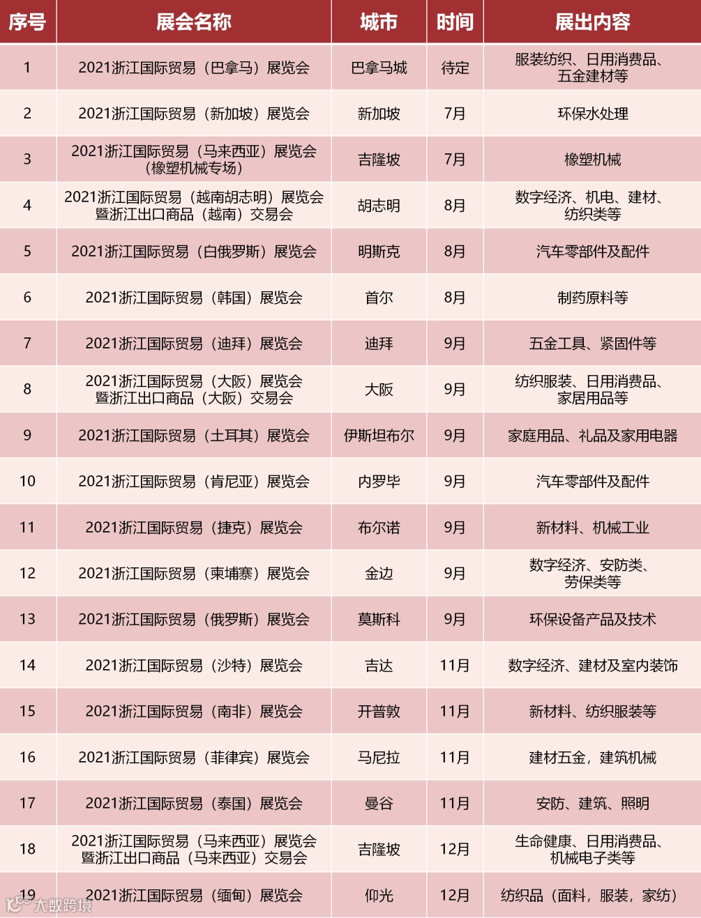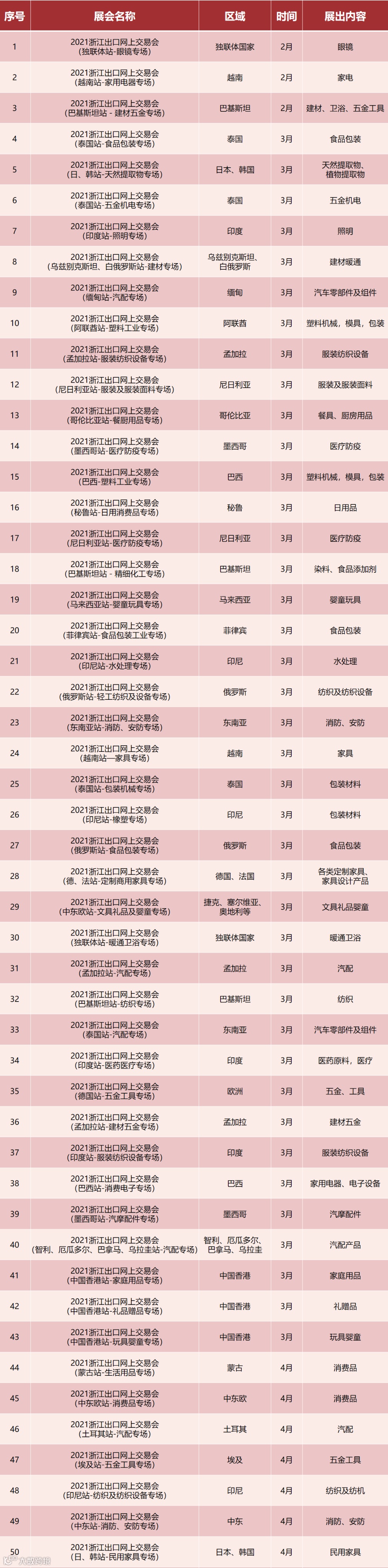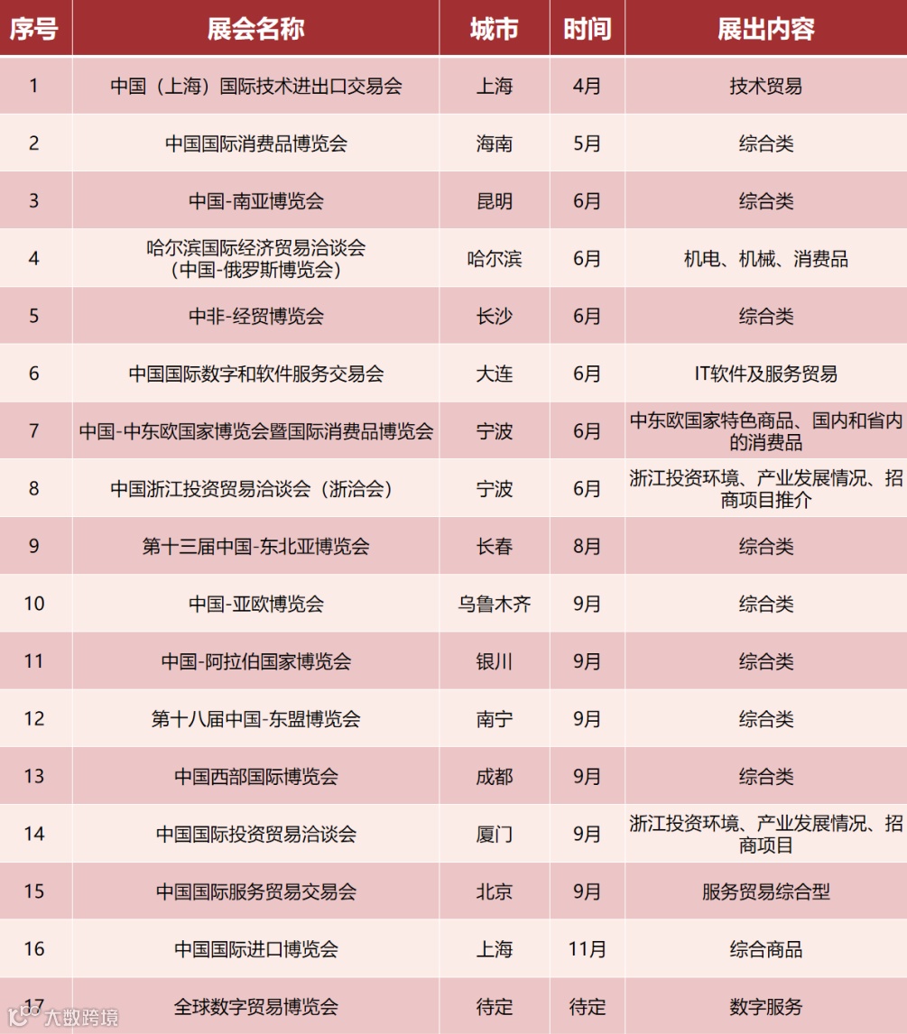 浙江省商务厅发布2021年度展会目录