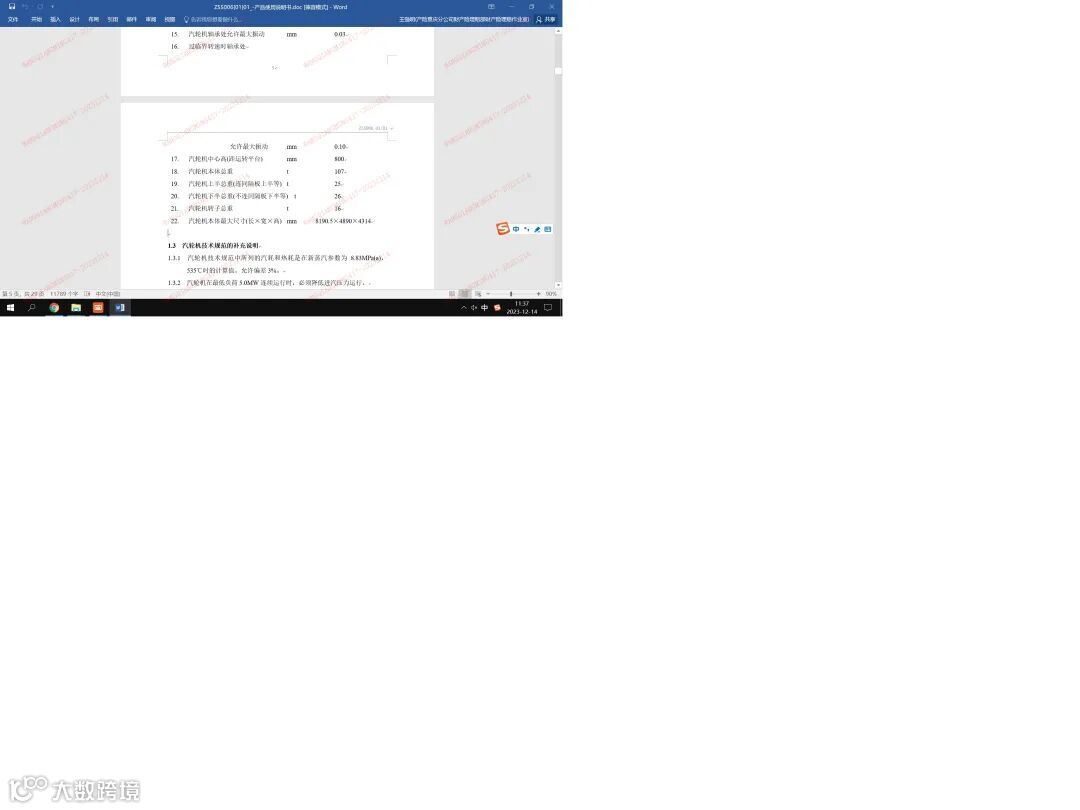 标的规格:N25-8.83-2型 25MW凝汽式汽轮机
