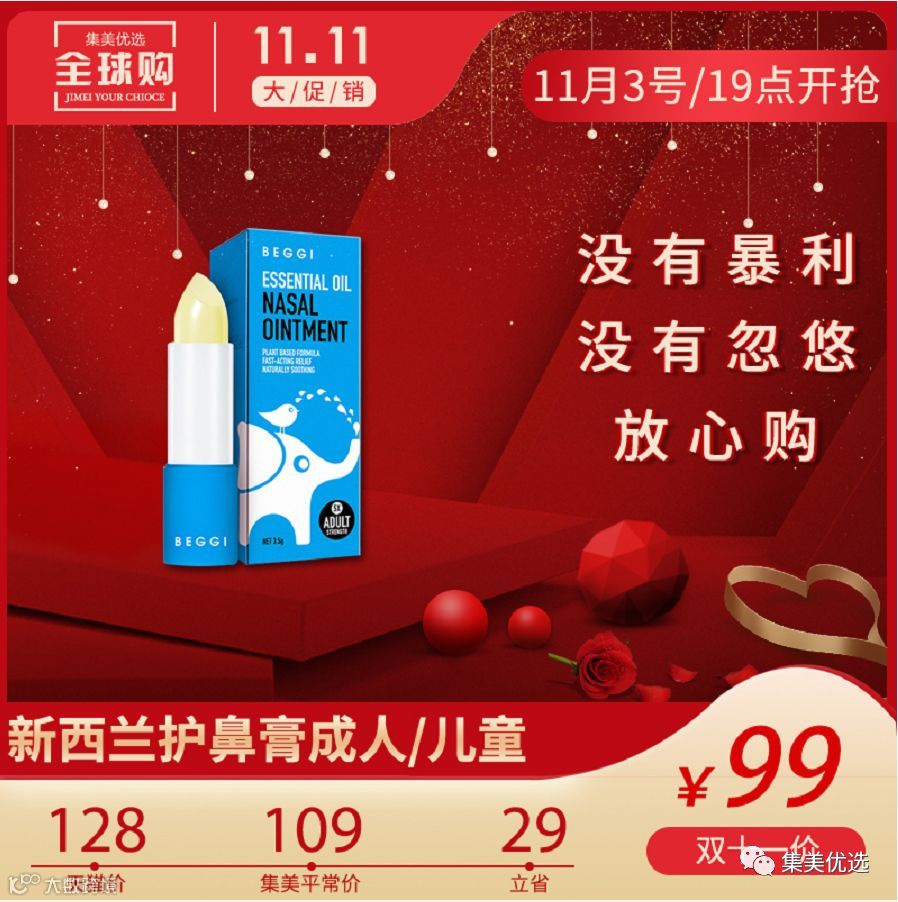 BEGGI鼻精灵新西兰麦卢卡精油护鼻膏鼻炎成人/儿童外涂舒缓鼻塞通鼻膏