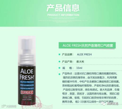 意大利ALOE FRESH 口气清新喷雾剂 纯天然芦荟薄荷除菌