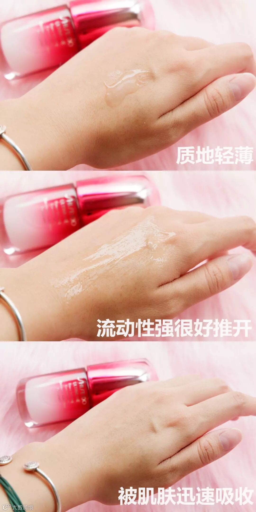 质地属于半透明凝露状,刚涂开的时候会有一点黏感,抹开后会迅速变成水状,黏腻感也随之消失,不会给皮肤带来油腻的负担👇