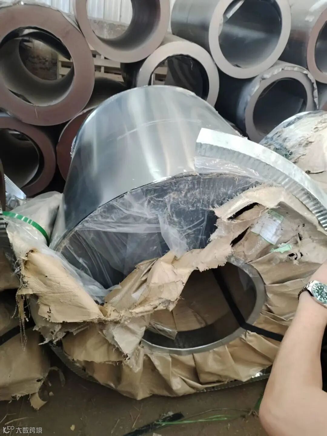 受损原因:车辆侧翻导致钢卷掉落
