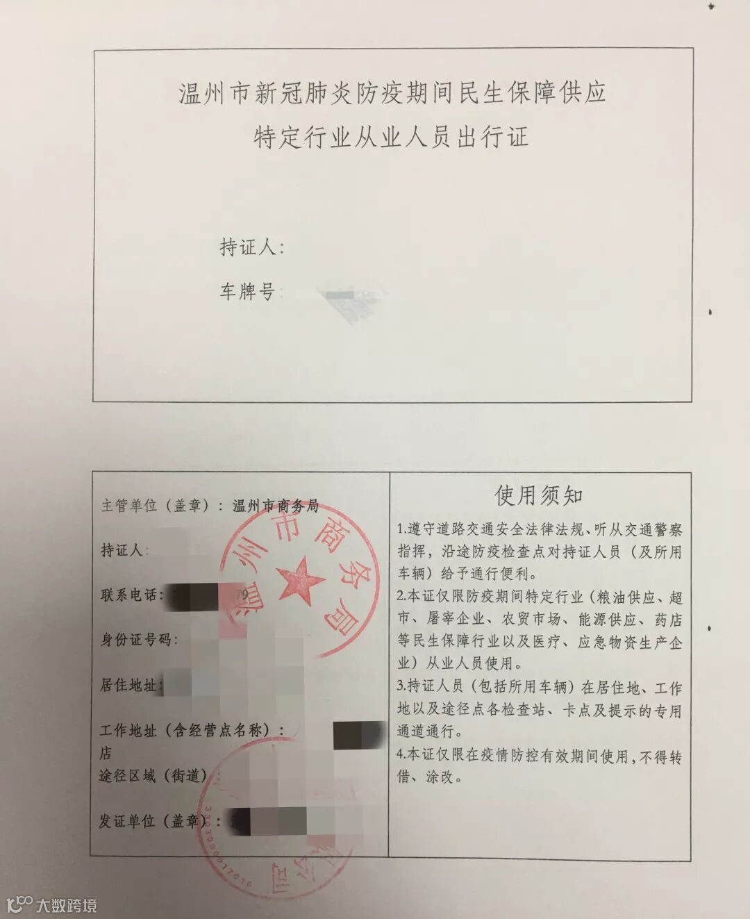 为做好应急物资保供工作,根据市疫情防控工作领导小组办公室《关于疫情防控期间特殊车辆和人员通行管理的通知》精神,市商务局会同县市区商务部门在严格把控通行范围、运输用途、驾驶员身份认证等前提下,为运送民生物资车辆开具疫情防控车辆专用通行证。