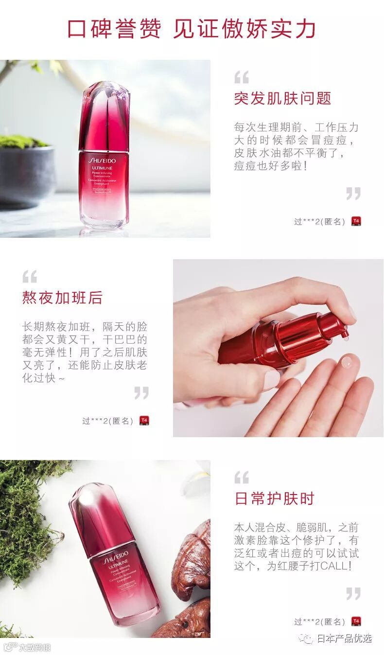 号称是由资生堂推出的世界上第一款可以提高皮肤免疫力的护肤品,功效比较全面的一款精华,含有许多种天然成分,具有显著的抗菌,消炎,抗氧化的功效,不但可以修复受损的肌肤,而且还可以延缓衰老,一瓶资生堂红妍肌活精华露就能解决多种皮肤困扰,如果你的皮肤不再健康,如果你没有多余的时间可以做繁琐的皮肤护理工作,那么选择资生堂红妍肌活精华露就可以轻松解决所有问题了。