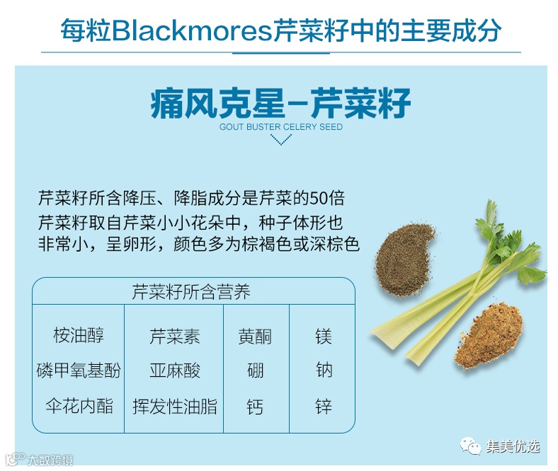 【大牌团购】澳洲Blackmores澳佳宝 西芹籽精华 50粒 原价:129元 VIP /黑卡M1会员 福利补贴价:89元 三高”我们再熟悉不过,但你知道“第四高”吗?