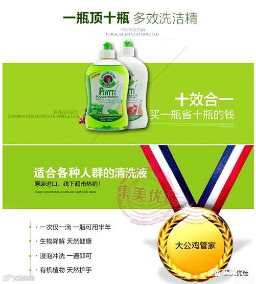 今天推荐的这款意大利大公鸡浓缩洗洁精,浓缩就是精华,十效合一,纯植物配方,1滴=4倍去油 温和配方,亲肤不伤手